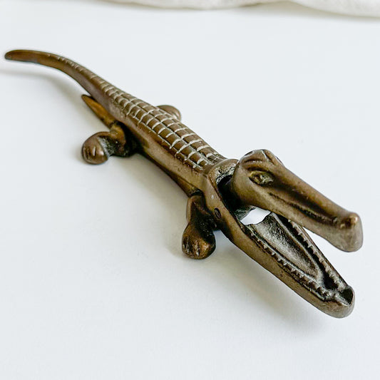 Vintage Brass Alligator Nutcracker