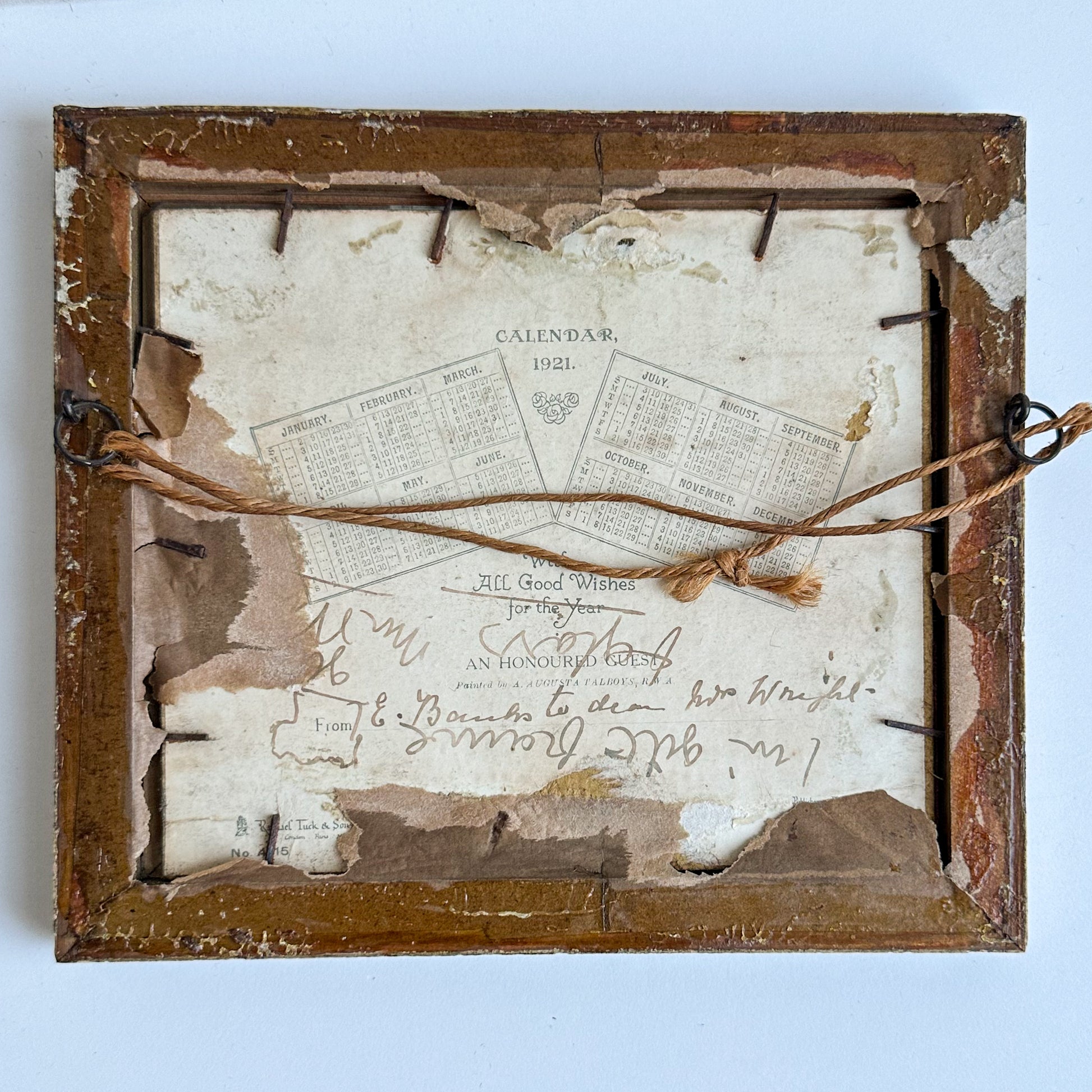 The backing is a 1921 calendar which gives us a better idea regarding the age of this piece.