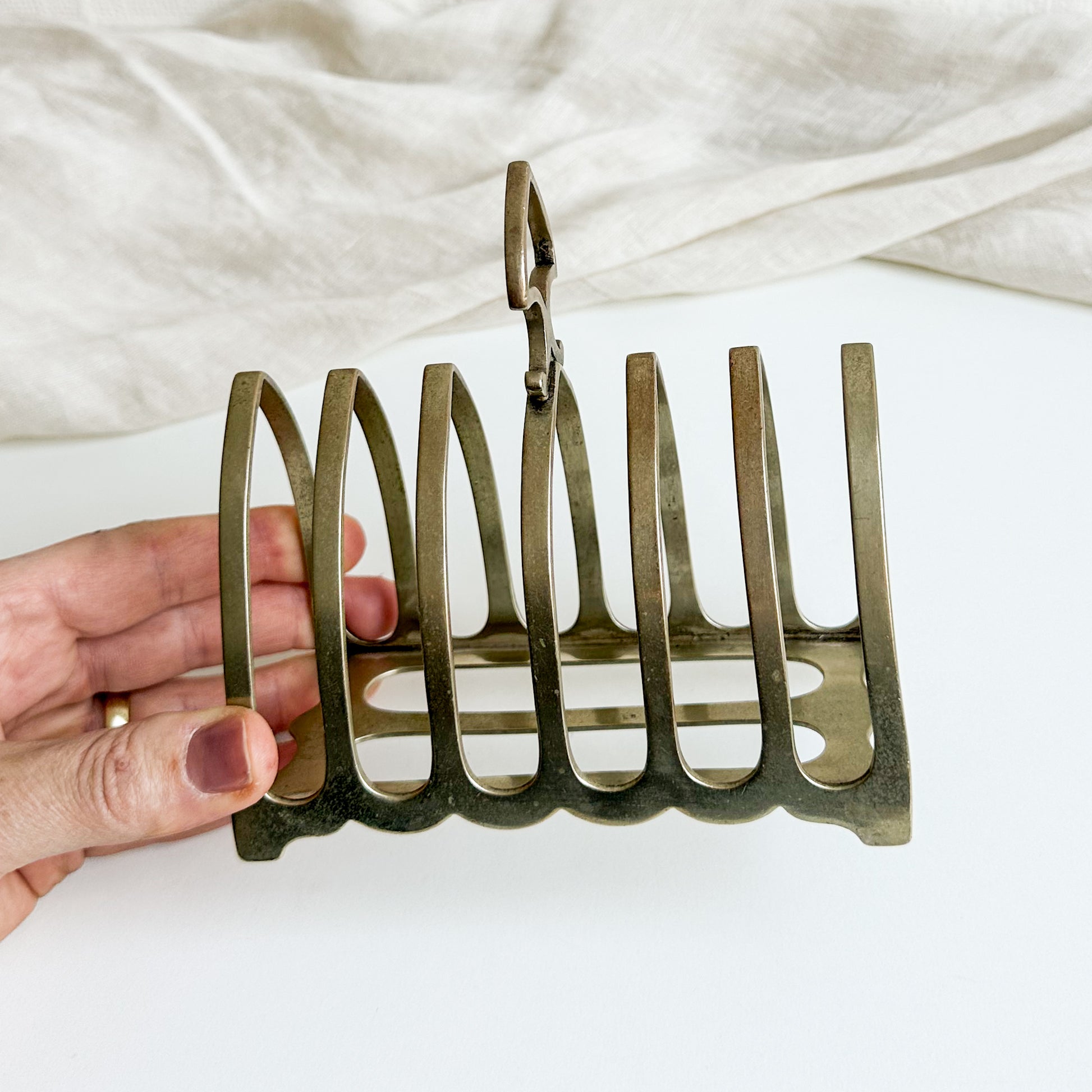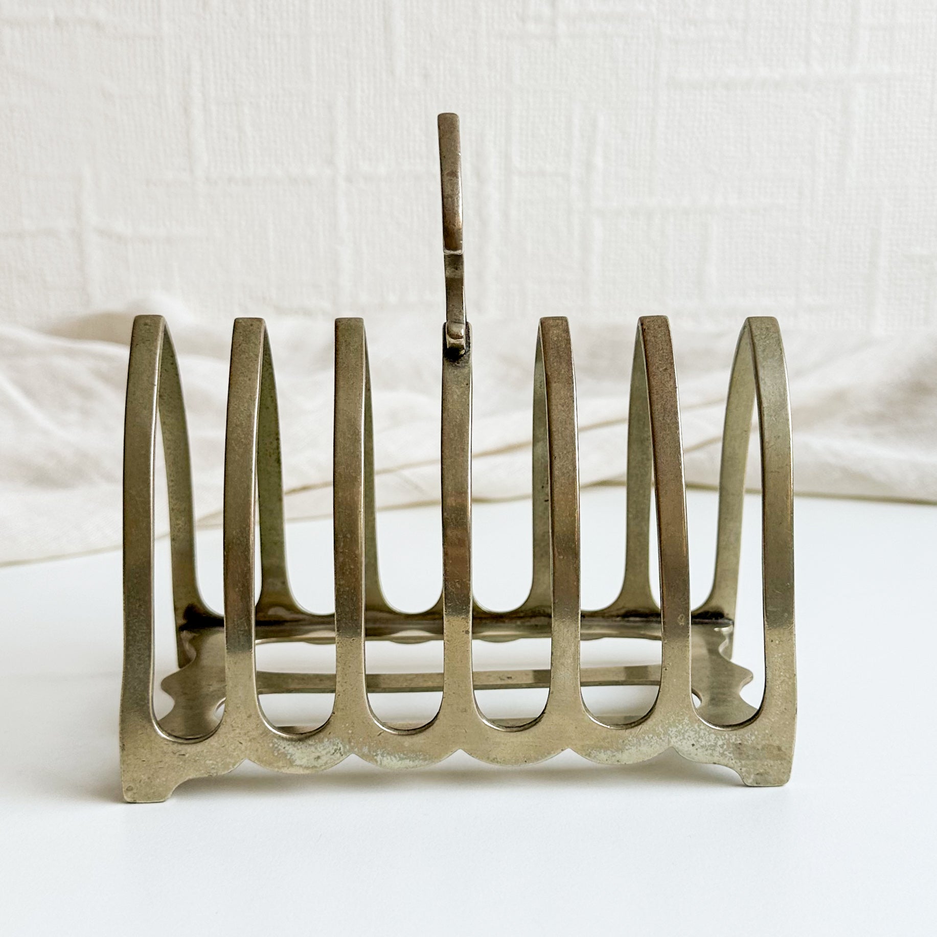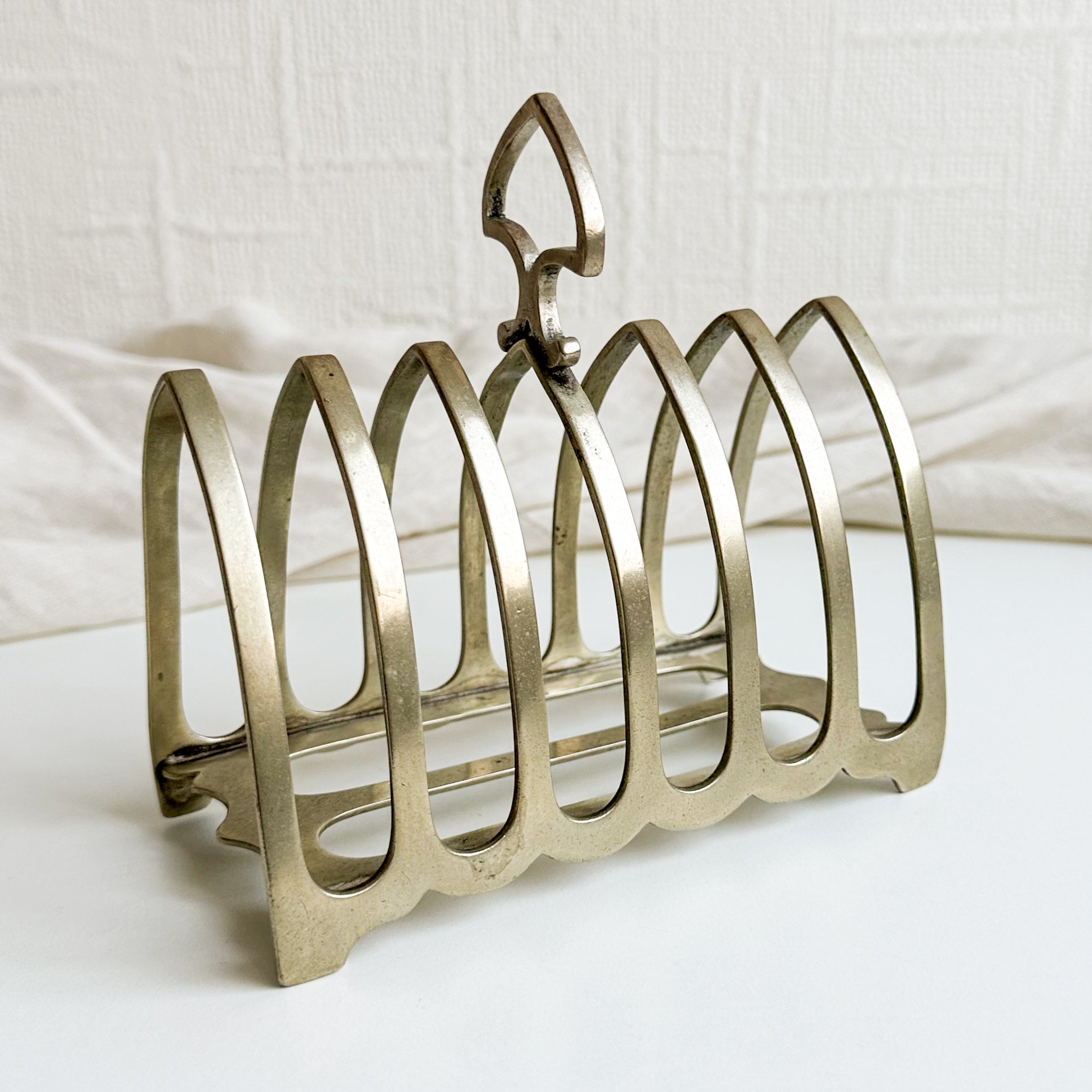 A wonderful antique toast rack for six slices, made by Harrison Bros & Howson in Sheffield, likely from the late 1800s.