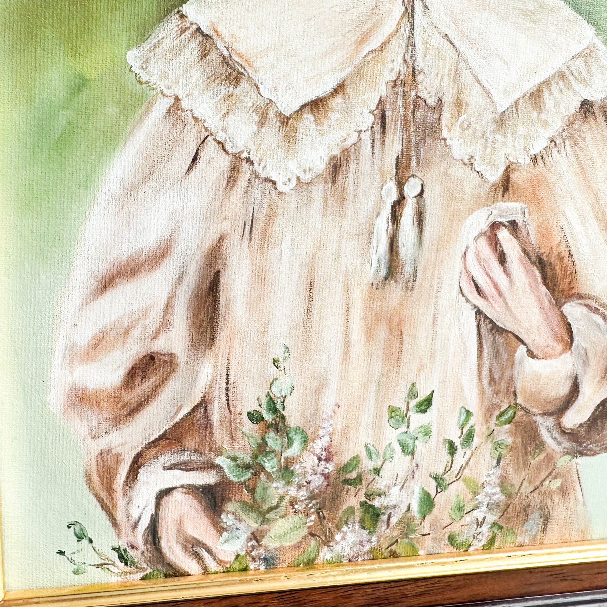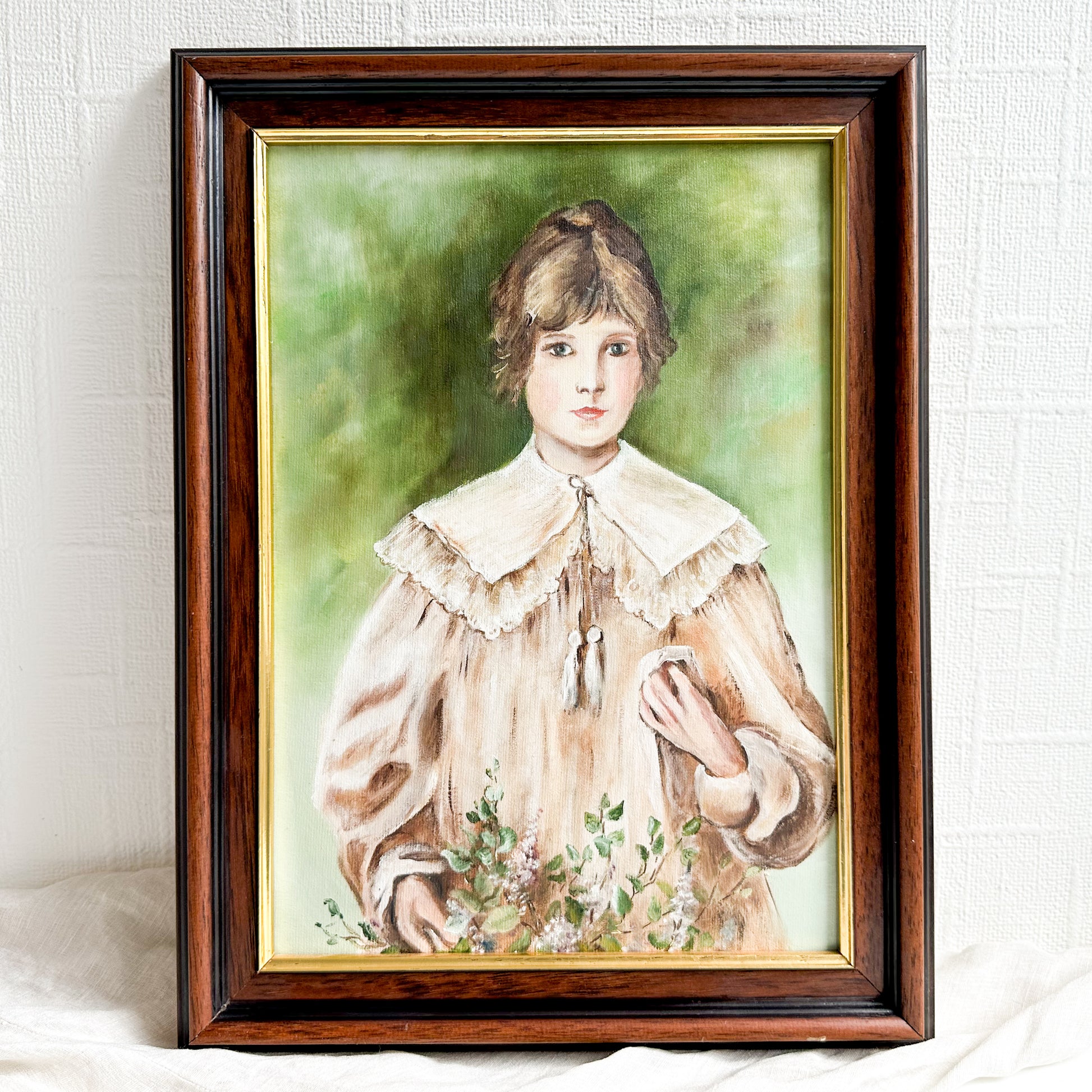 A lovely painting, featuring a young girl holding some lilac. This is a beautiful reproduction of the painting called ‘Lilac’ by Davidson Knowles. Oil on board with wooden frame.