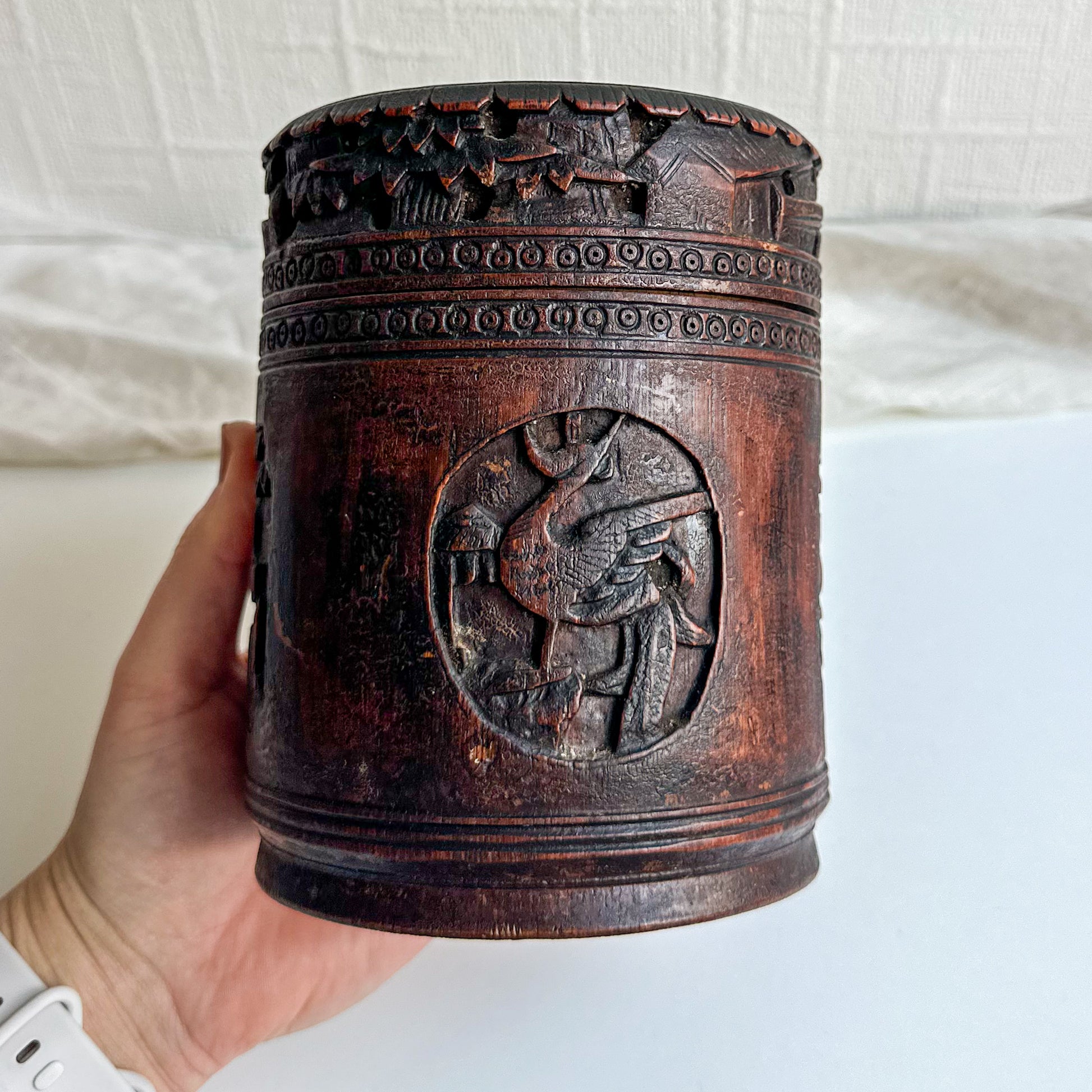Chinese Carved Bamboo Tobacco Box