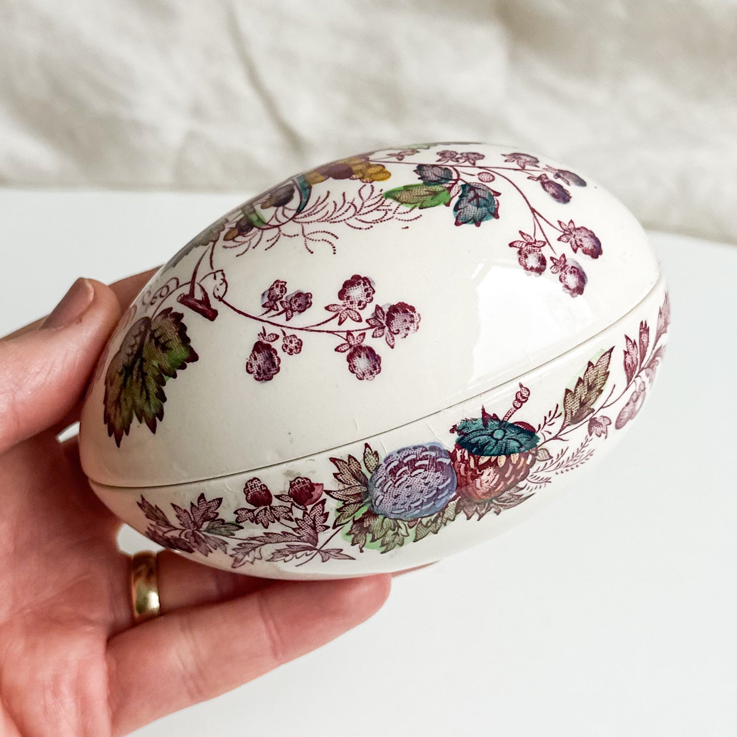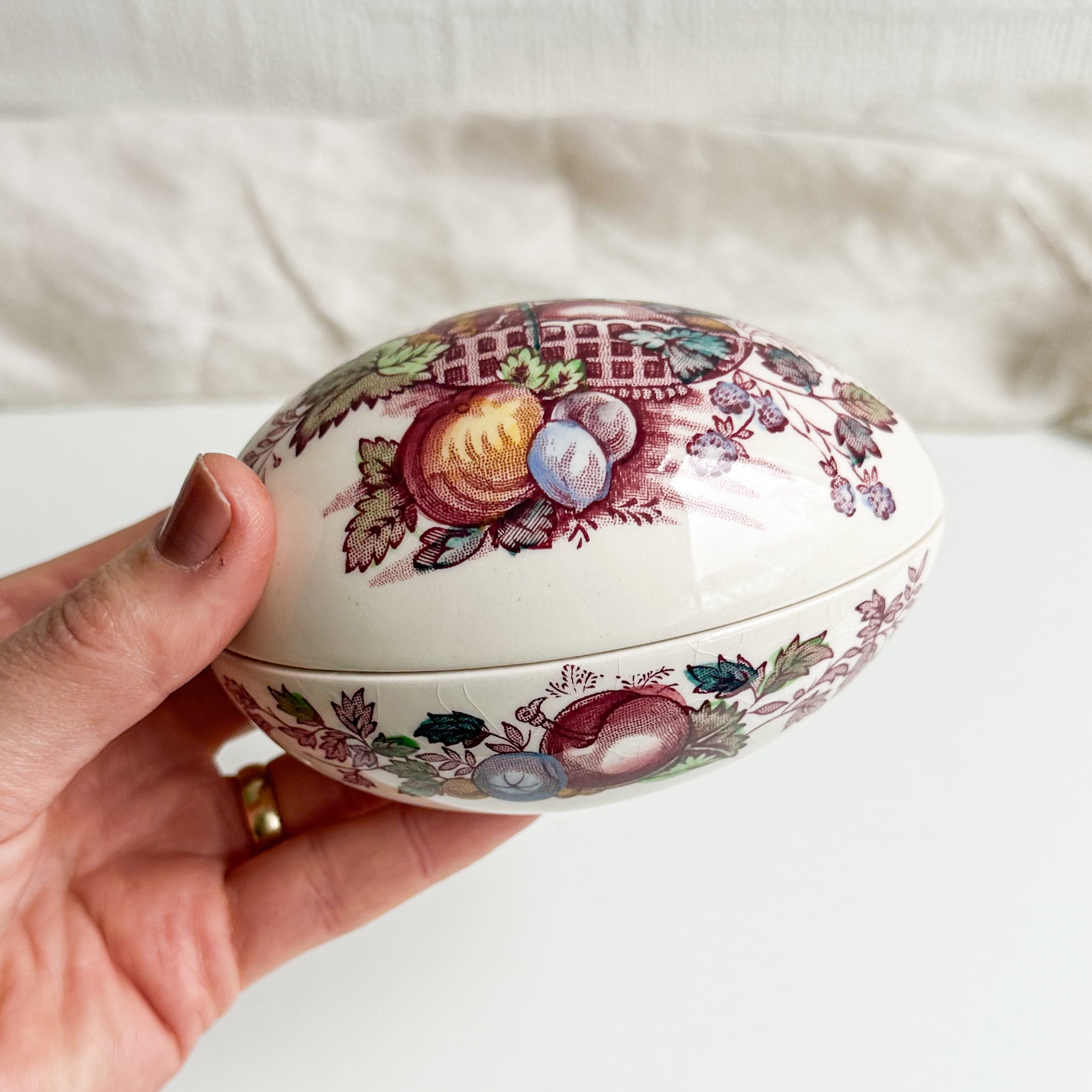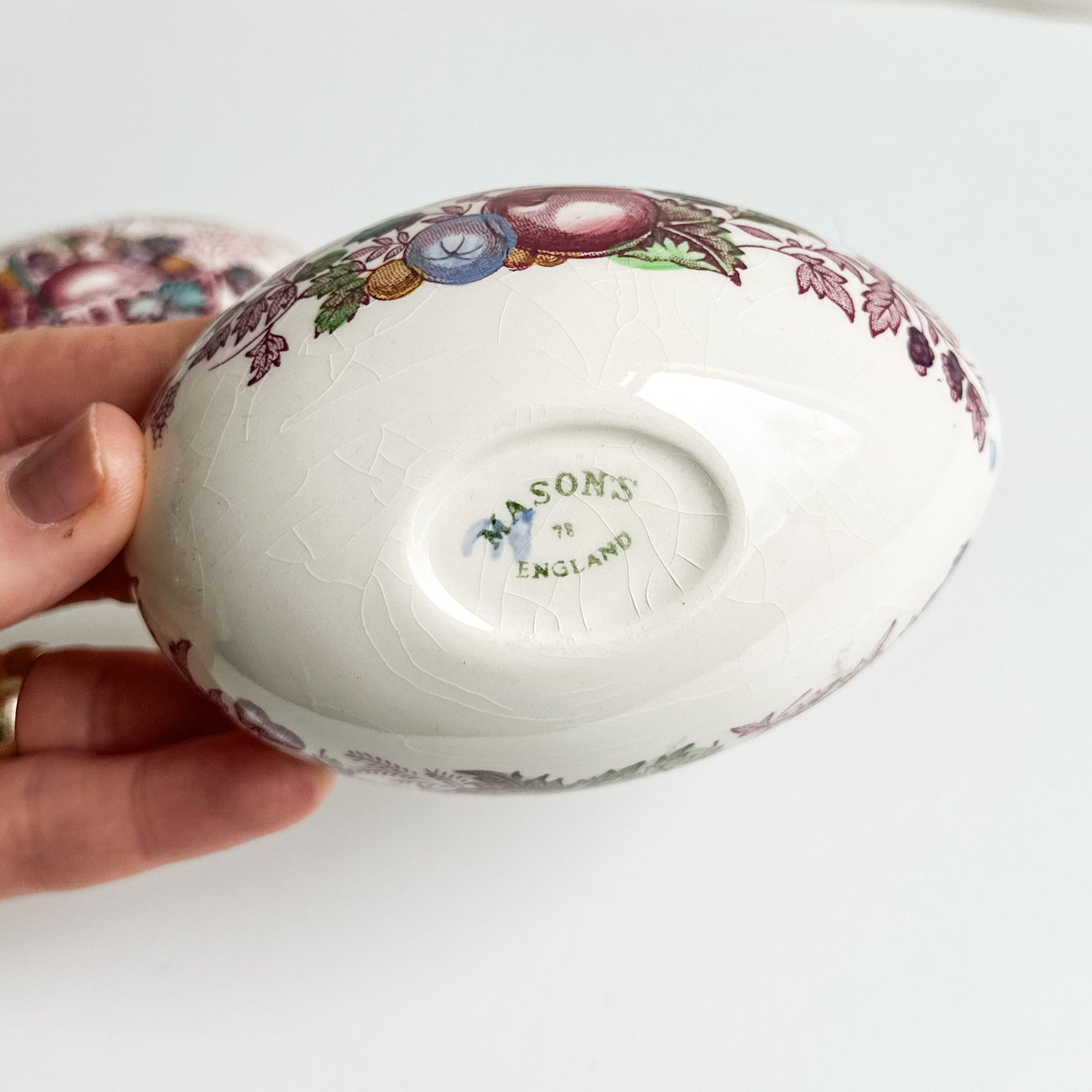 A beautiful ceramic box with lid by the popular Mason’s pottery, with a lovely pattern called “Fruit Basket”. Suitable as a jewellery box or for other small treasures.
