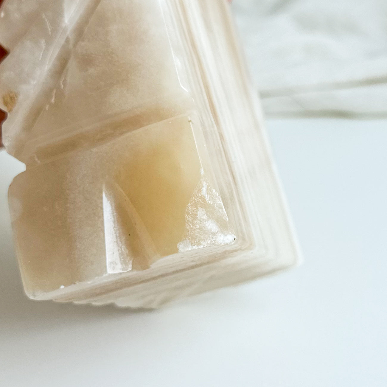 A hand-carved Aztec bookend made from onyx, likely from the 1960s-1970s.