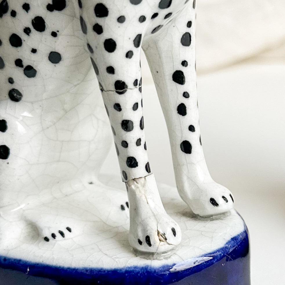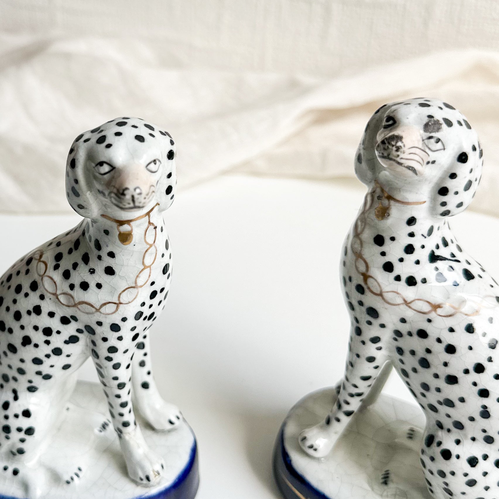 A wonderful pair of antique Staffordshire dogs, in the shape of seated Dalmatians. A rare and very sought after design!