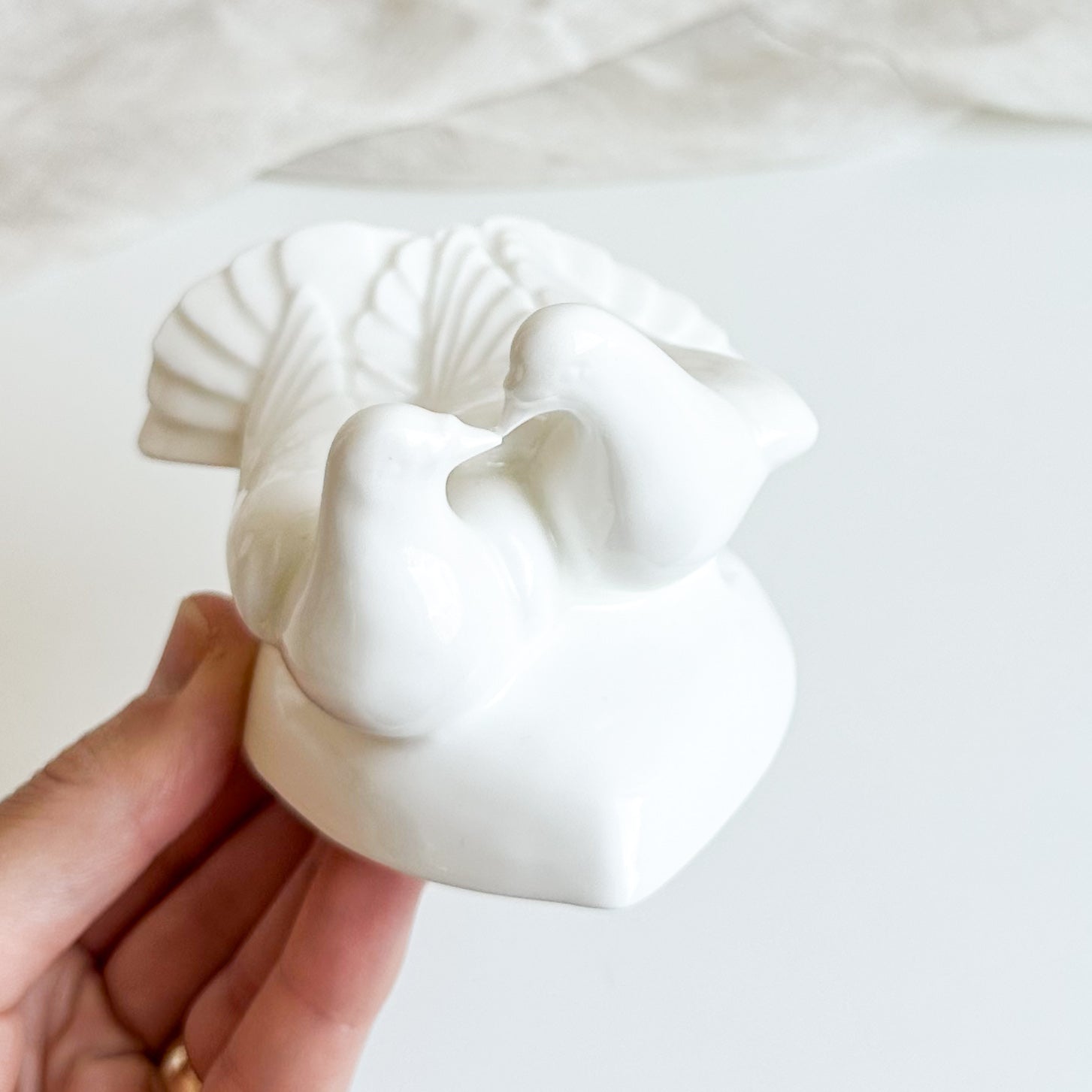 Beautiful porcelain figurine featuring two white doves, made in 1996 by Royal Doulton as part of their Images of Nature collection. This design is called “Devotion”.