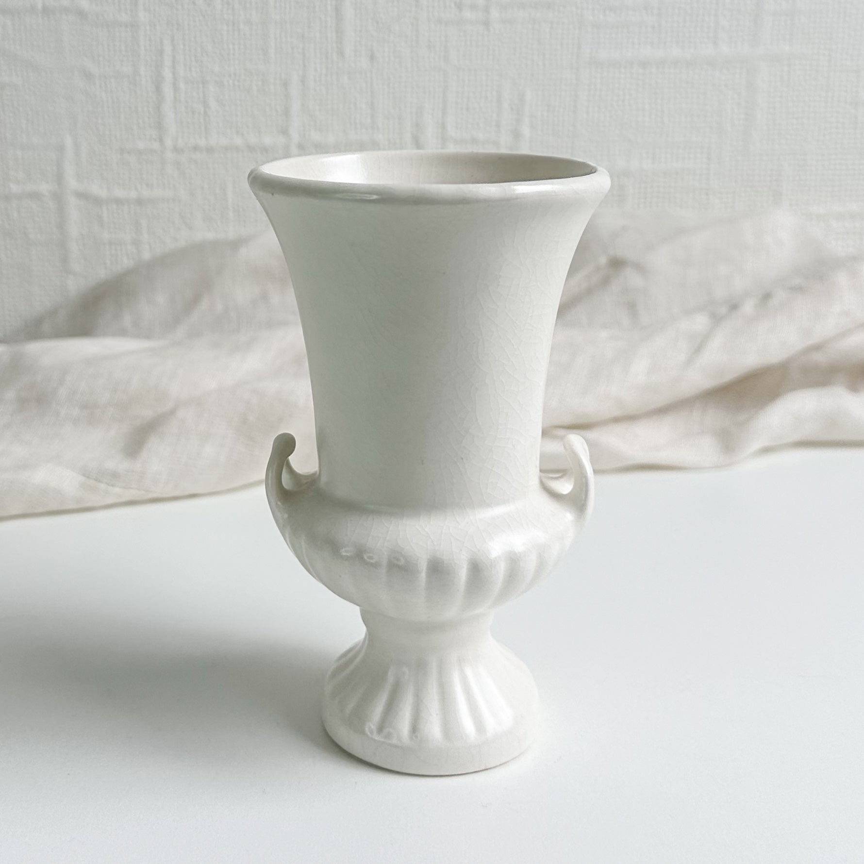 A small Sylvac vase in a lovely urn shape with little handles and ribbed design. Lovely off white colour.